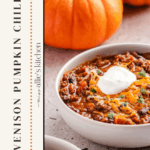 Classic venison chili gets a twist with the addition of pumpkin puree and warming spices. It’s hearty and the perfect harvest meal!
