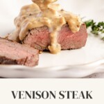 - When you’re ready to serve, slice the venison steak into strips and pour over the sauce. Enjoy!